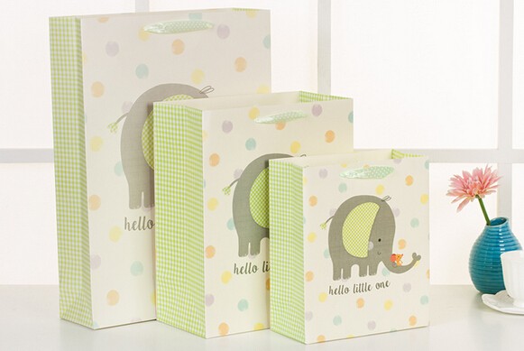 卡通大象精美化妝品白卡紙袋定制