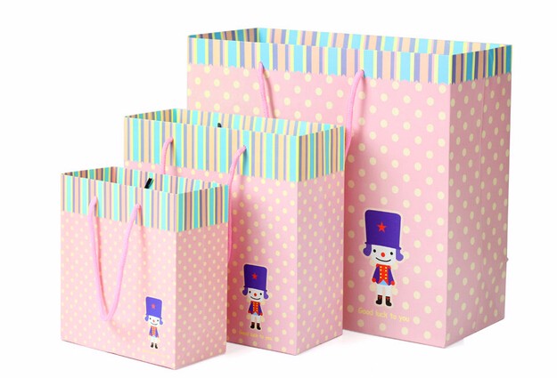 卡通粉色禮品白卡紙袋定制