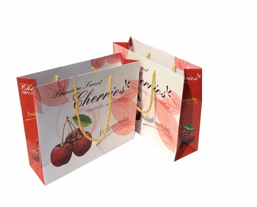 櫻桃紅色時尚禮品牛皮食品袋定制